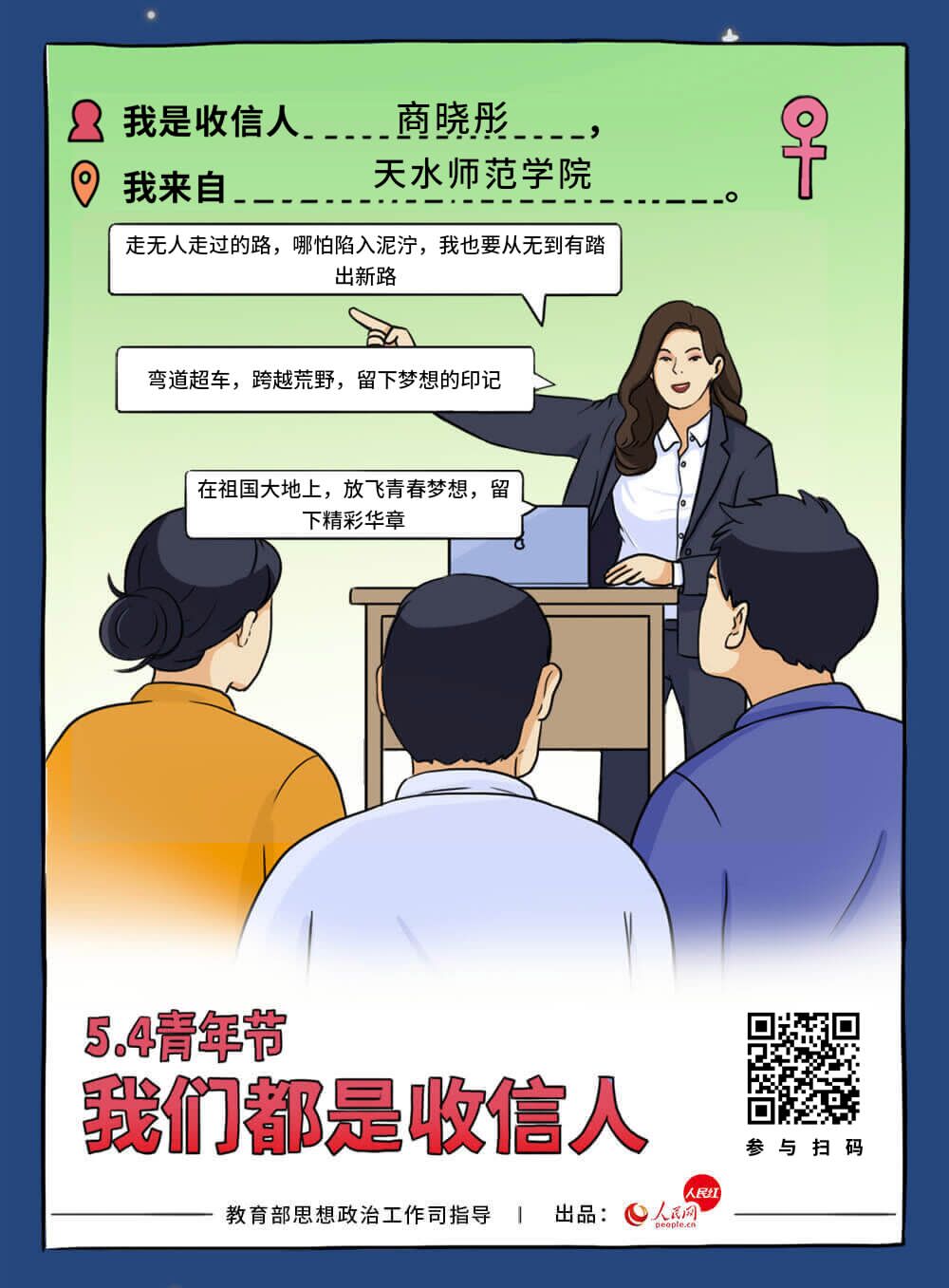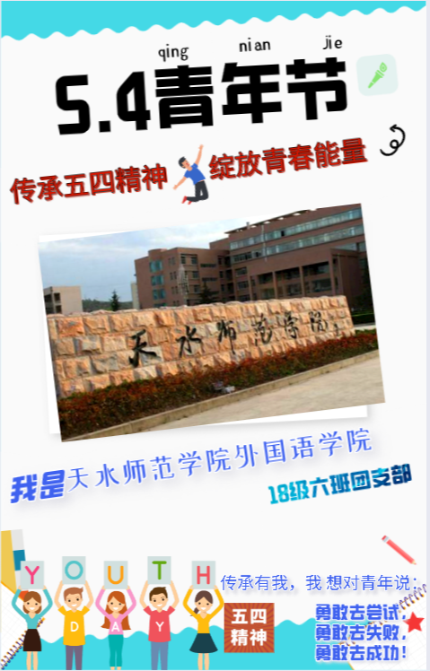 各团支部积极开展“五四精神 传承有我”的学习活动,鼓励共青团员积极参与,通过本支部QQ群沟通交流,以制作海报、短视频、漫画、手抄报等形式,围绕纪念五四运动,青春正能量、青春感悟等积极向上内容,展示祖国建设伟大成就和当代青年风貌。