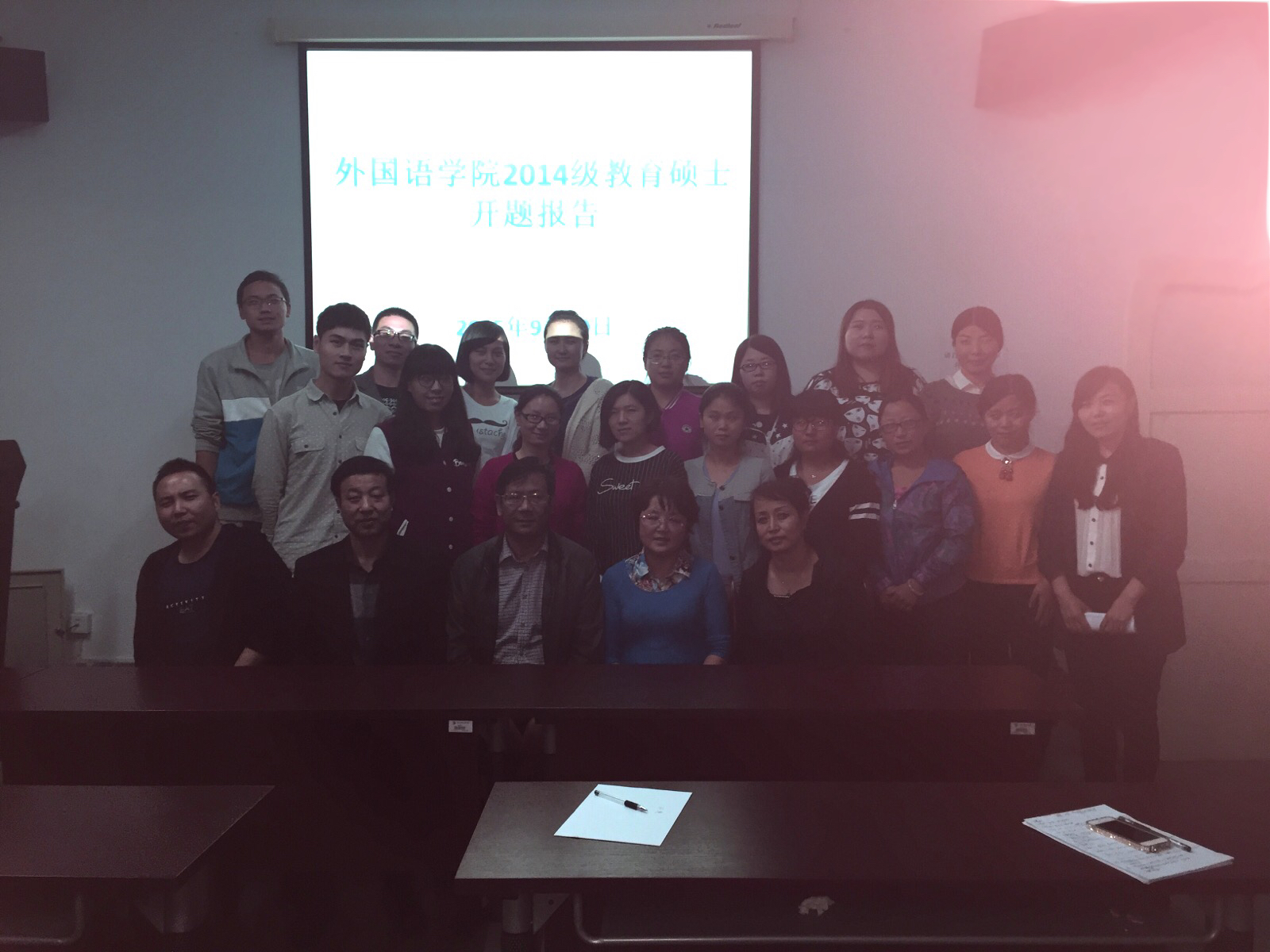 2015年9月19日,我院举行了2014级教育硕士学位论文开题答辩会。本次开题会的答辩小组成员为我院教育硕士导师李旭明、桑仲刚、柳淑瑛和郭晓英,还特别邀请了天水市一中的高级教师陈万生。