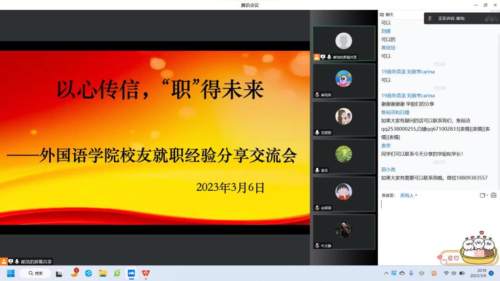 为了更好推进2023届毕业生就业服务工作,2023年3月6日,国产乱伦视频举办了题为“以心传信,‘职’得未来”的毕业生校友就职经验分享交流会。