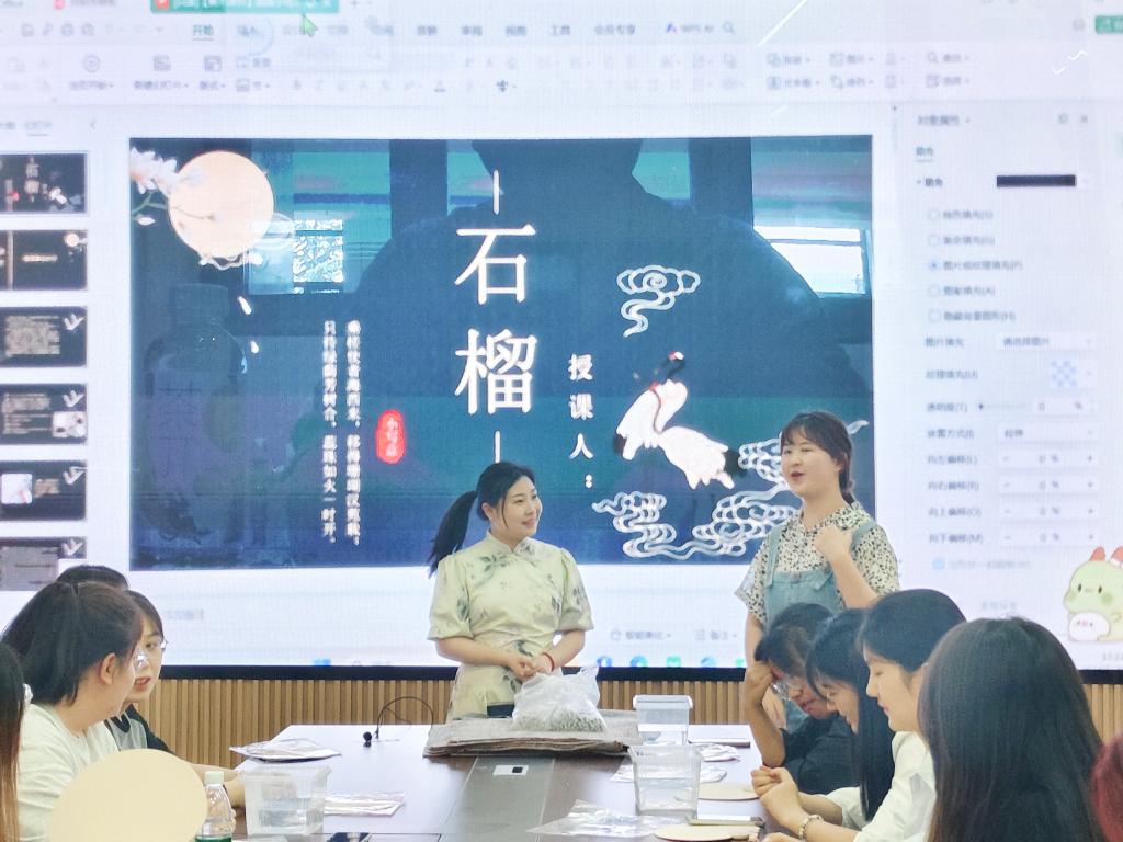 团扇,寓意着团圆,也寓意着民族团结和祖国的繁荣昌盛。团扇方寸之间,融入了诸多中国传统工艺和匠人精神,精巧雅致的东方美学尽显其间。石榴寓意着“各民族团结”,让同学们深刻理解到各民族之间要相互了解、相互尊重、相互包容、相互欣赏、相互学习、相互帮助,要像石榴籽那样紧紧抱在一起。此次活动的开展,让在场的师生们在享受文化乐趣的同时,也深刻领会了民族团结的重要性以及中华文化的博大精深。