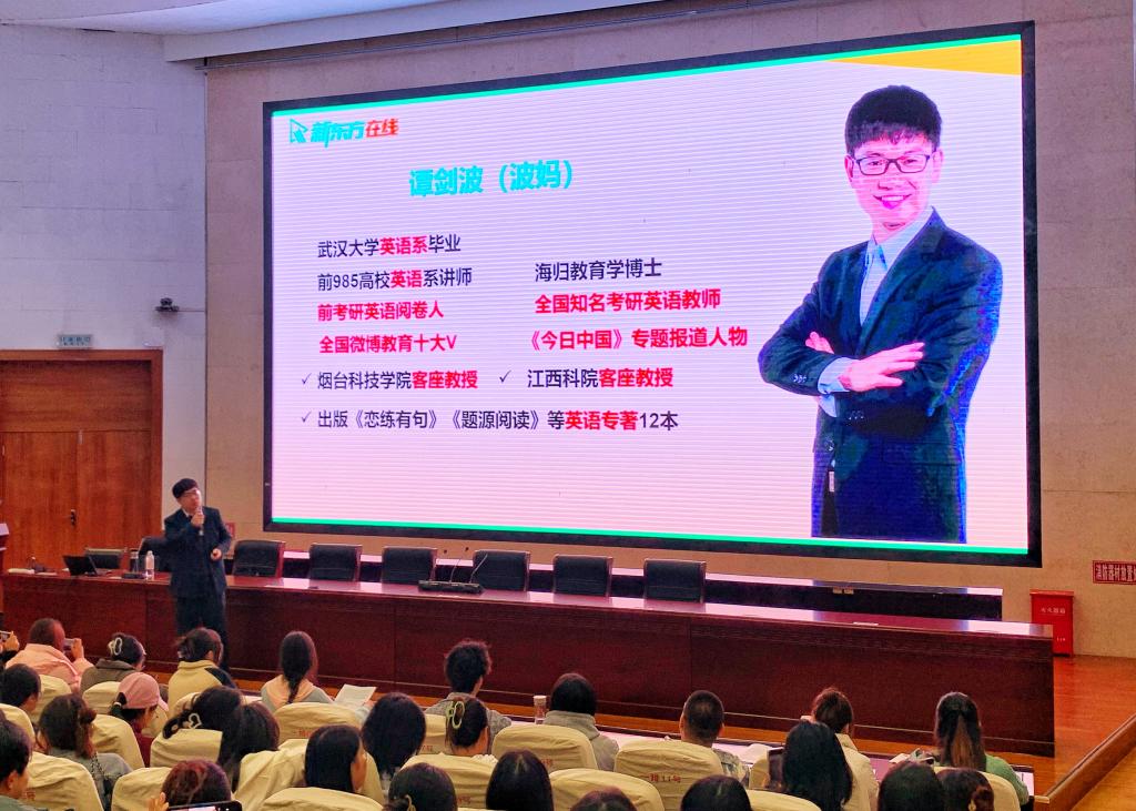 为助力我校考研学子科学、高效备战研究生入学考试,国产乱伦视频特邀新东方考研名师谭剑波老师于11月7日晚在二号报告厅为我校学子作题为“考研英语阅读逻辑深度解析”的专题讲座。本场讲座座无虚席,“干货”满满,极大地提升了我校学生的考研热情。