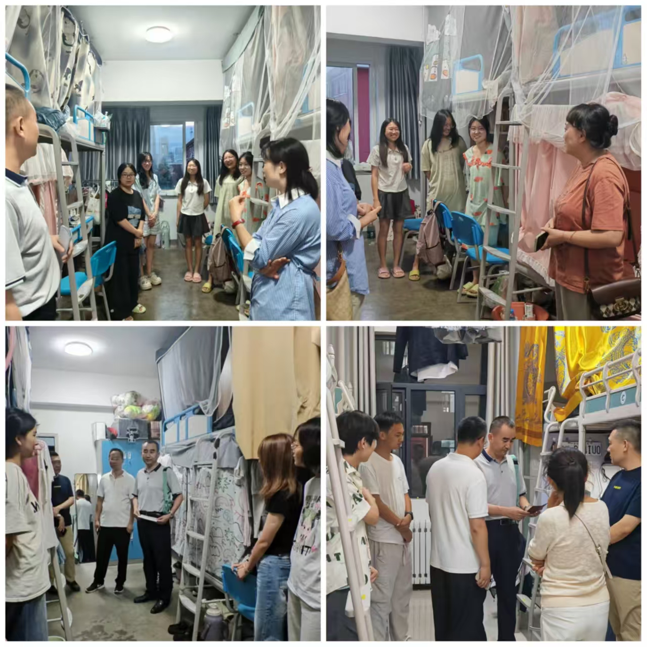 走访中,在每一间宿舍老师们都细致检查了卫生情况,认真核验学生返校报到信息,确保安全返校;同时重点排查了用电安全、消防设施等各类隐患,切实保障学生住宿环境的安全与舒适。师生间还展开了亲切交流,老师们细心询问同学们返校后的适应情况,耐心倾听大家新学期的期待,了解学业、生活上的困难,并一一给予回应与暖心鼓励。一句句温暖的问候、一次次真诚的交谈,既拉近了师生距离,也让同学们真切感受到学院的深切关怀与殷殷嘱托。
