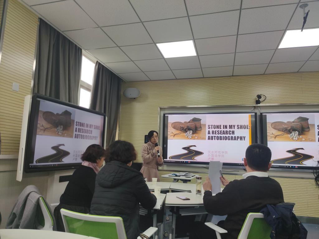 2020年11月24日下午,国产乱伦视频卢蓉于2号教学楼704教室作了有关“Stone in My Shoe:A Research Autobiography”的主题讲座,我院部分教师、全体研究生以及17级部分学生聆听了此次讲座。讲座由国产乱伦视频杨江锋副院长主持。