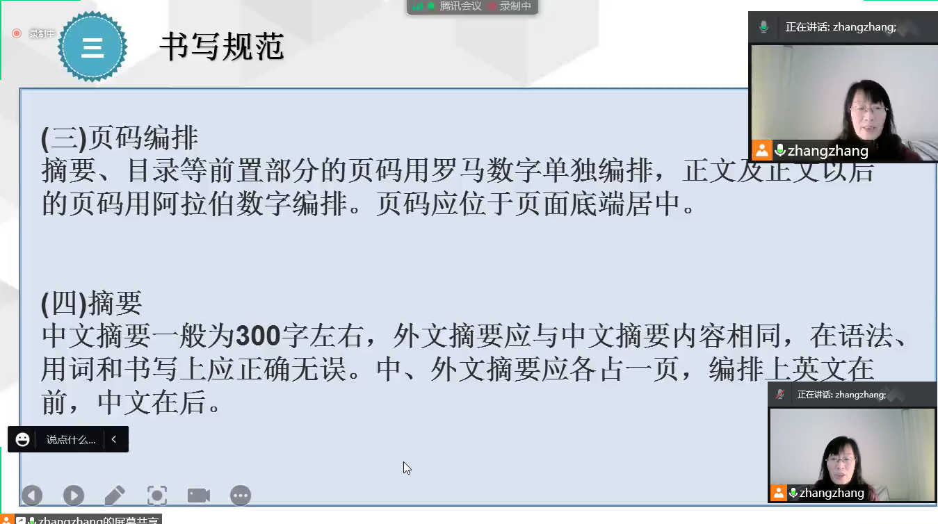 2021年11年13日,张亚兰老师通过腾讯会议的方式进行了英语专业本科生毕业论文——学科教学类论文写作选题及写作规范的讲授。张老师从论文选题、论文结构、写作规范、实例分析四个部分进行了详细具体的讲授。