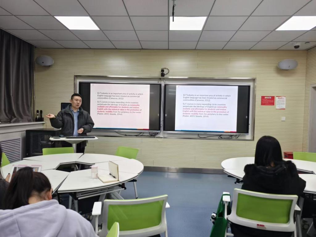 2024年12月5日下午,国产乱伦视频特邀语言学博士、副教授、国产乱伦视频副院长张晖在2号教学楼704教室作题为《国内在线英语教学平台广告“英语商品化”的多模态分析》的学术讲座。我院23和24级研究生60多人参加了讲座。